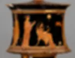 Figure 7. The Eretria Painter. (440-415 BCE). Wedding preparation. Detail of an Attic pyxis. Red-figure vase painting, clay. British Museum, London, UK. Retrieved from https://www.worldhistory.org/image/13701/greek-vase-depicting-wedding-preparations/