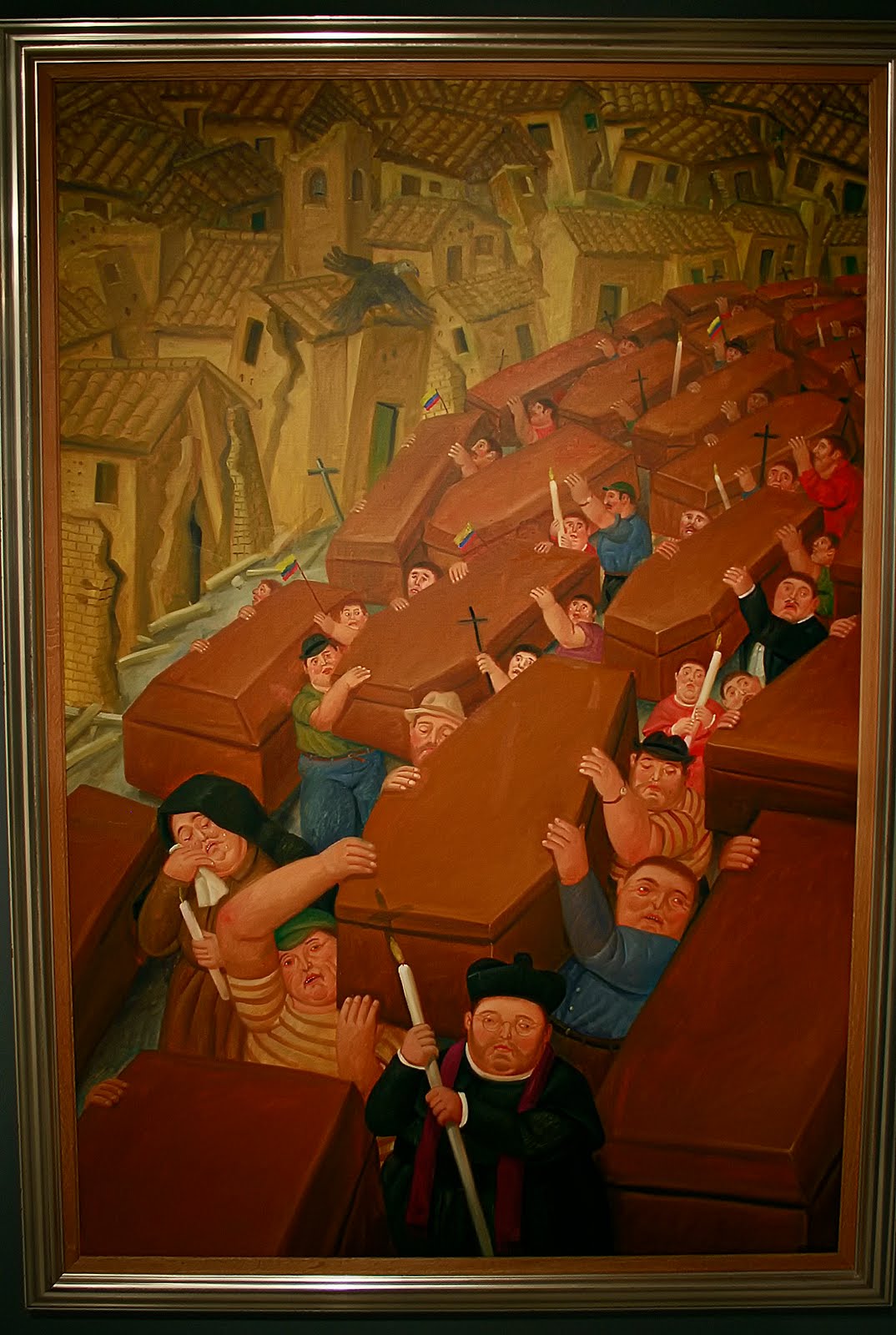 Figure 3: Botero, F. (2000). Masacre en Colombia [Painting]. Retrieved from: https://medellinliving.com/wp-content/uploads/2015/08/masacre.jpg